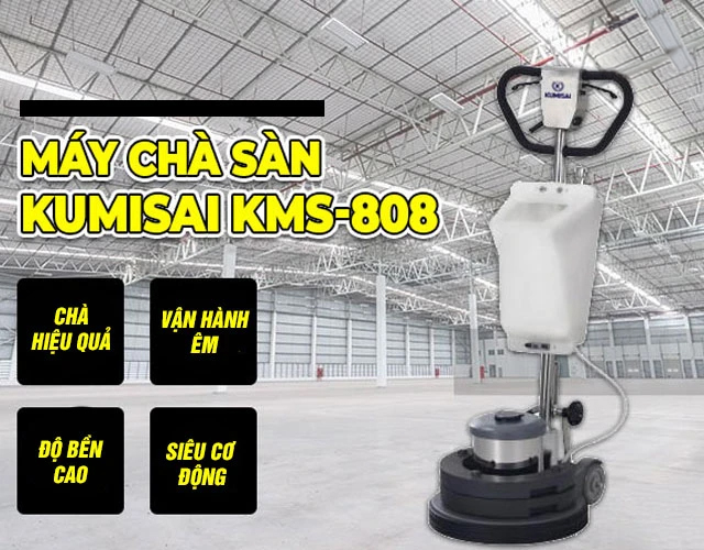 Máy chà sàn Kumisai KMS-808 là một sản phẩm nổi bật trong phân khúc máy chà sàn đơn (máy chà sàn tạ), được đánh giá cao về hiệu quả làm sạch và tính linh hoạt. Thiết bị này phù hợp cho nhiều không gian từ công xưởng, nhà hàng, văn phòng đến cả hộ gia đình có nhu cầu vệ sinh chuyên sâu. Máy hoạt động bằng cách chuyển đổi điện năng thành cơ năng, làm quay bàn chà và kết hợp hóa chất chuyên dụng để loại bỏ vết bẩn cứng đầu trên nhiều bề mặt như bê tông, gạch, đá. Thiết kế tận dụng trọng lực giúp tăng áp lực chà, nâng cao hiệu quả làm sạch.