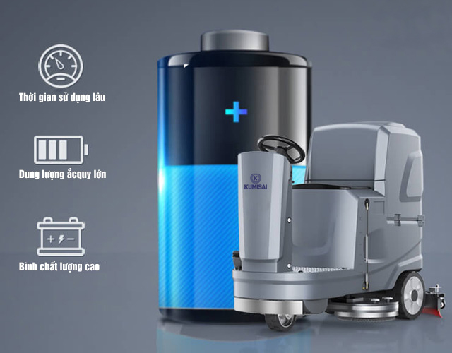 Một trong những ưu điểm nổi bật nhất của Máy chà sàn ngồi lái Kumisai KMS 85 là khả năng hoạt động độc lập, không phụ thuộc vào nguồn điện trực tiếp, mang lại tính cơ động và linh hoạt tối đa cho công việc vệ sinh. Máy được tích hợp sẵn hệ thống ắc quy 24V100AH chất lượng cao, cho phép sạc đầy pin nhanh chóng và cung cấp nguồn năng lượng ổn định cho toàn bộ quá trình vận hành.1 Sau mỗi lần sạc đầy, Kumisai KMS 85 có khả năng vận hành liên tục trong khoảng 3 giờ.1 Thời gian hoạt động dài này đặc biệt quan trọng đối với các khu vực rộng lớn, giúp hoàn thành công việc mà không bị gián đoạn giữa chừng. Việc không cần phụ thuộc vào ổ cắm điện hay dây nguồn rườm rà mang lại sự tự do di chuyển tuyệt đối cho người điều khiển.1 Máy có thể dễ dàng tiếp cận mọi ngóc ngách, di chuyển qua các khu vực xa nguồn điện hoặc những nơi có điện yếu mà không làm gián đoạn công việc. Điều này không chỉ tăng cường hiệu quả làm sạch mà còn loại bỏ các nguy cơ vấp ngã do dây điện, góp phần tạo nên một môi trường làm việc an toàn hơn. Khả năng hoạt động bằng ắc quy giúp duy trì năng suất làm việc ổn định, không bị ảnh hưởng bởi sự cố mất điện cục bộ hoặc biến động điện áp, đảm bảo tiến độ vệ sinh luôn được duy trì. Điều này mang lại sự linh hoạt đáng kể, cho phép các hoạt động vệ sinh được thực hiện vào bất kỳ thời điểm nào, kể cả ngoài giờ làm việc cao điểm, mà không gặp phải các rào cản về cơ sở hạ tầng điện.