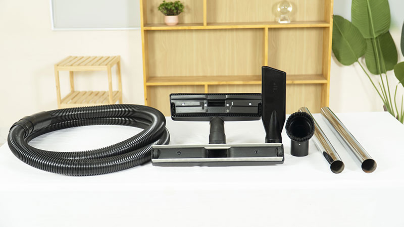 Kèm theo đầy đủ phụ kiện như bàn hút nước, bàn hút bụi, chổi tròn, giúp tối ưu việc hút bụi và chất lỏng trên nhiều bề mặt khác nhau.