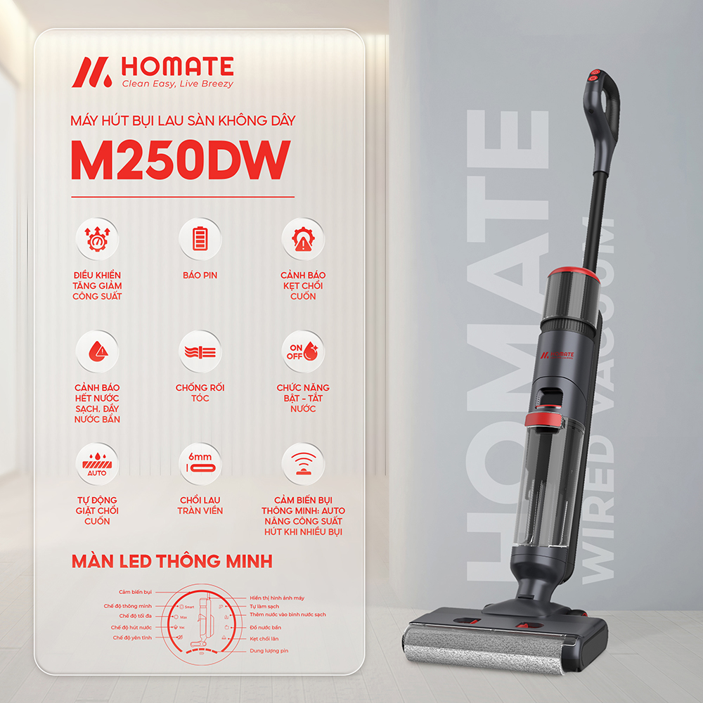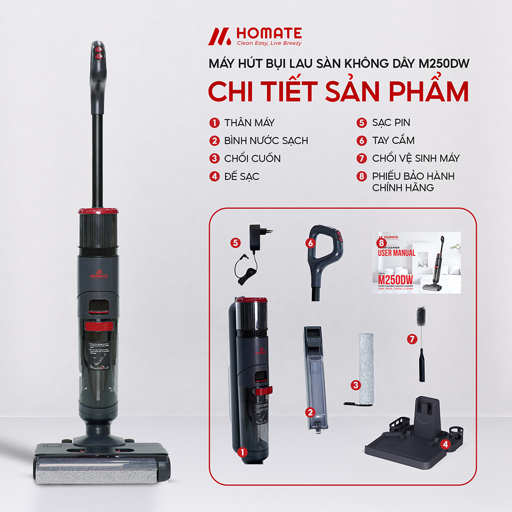 - Máy hút bụi lau nhà không dây HOMATE M250DW