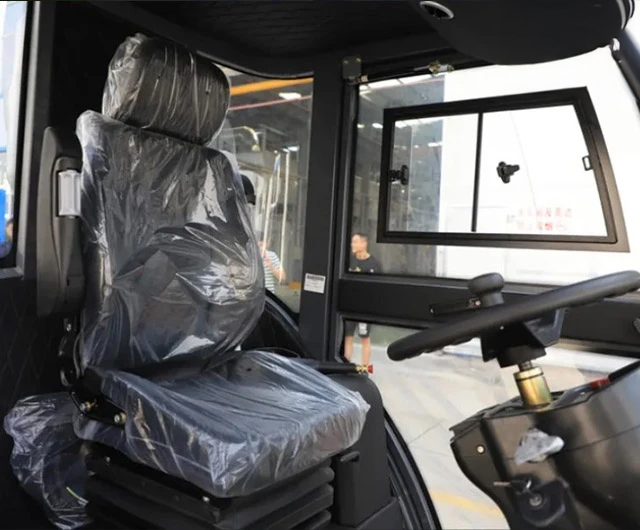 Điểm khác biệt lớn nhất của Kumisai KMS 480S chính là thiết kế cabin ngồi lái chuyên nghiệp. Thay vì phải đi bộ đẩy máy mệt mỏi, người lao động có thể điều khiển xe trong một không gian thoải mái với ghế đệm êm ái, giúp duy trì thể lực trong suốt ca làm việc dài. Cabin được bao quanh bởi lớp kính cường lực dày dặn, không chỉ bảo vệ người lái khỏi bụi bẩn và tác động ngoại cảnh mà còn cung cấp tầm nhìn toàn cảnh 360 độ. Đặc biệt, xe được trang bị hệ thống điều hòa hai chiều, một tính năng cực kỳ giá trị trong điều kiện thời tiết khắc nghiệt tại Việt Nam, đảm bảo sức khỏe và sự tập trung cho nhân viên vận hành. Khung xe được chế tạo từ hợp kim cao cấp kết hợp nhựa ABS siêu bền, giúp thiết bị chịu được các va chạm trong môi trường công nghiệp mà vẫn giữ được tính thẩm mỹ lâu dài.