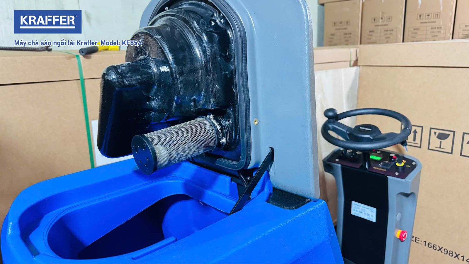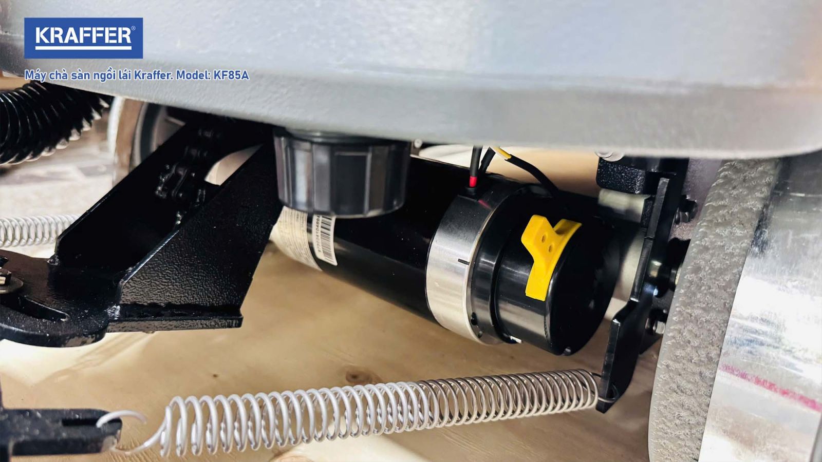 Sức mạnh của Kraffer KF85A đến từ hệ thống motor chuyên biệt. Motor chà 550W tạo ra áp lực 30kg xuống bề mặt sàn, đủ sức đánh bật các vết bẩn cứng đầu, vết bánh xe cao su hay dầu mỡ công nghiệp. Song song đó, motor hút 500W kết hợp với thanh hút nước dài 1030mm đảm bảo thu hồi toàn bộ nước thải, giúp bề mặt sàn khô ngay lập tức sau khi máy đi qua. Điều này cực kỳ quan trọng trong việc đảm bảo an toàn, chống trơn trượt cho người qua lại.