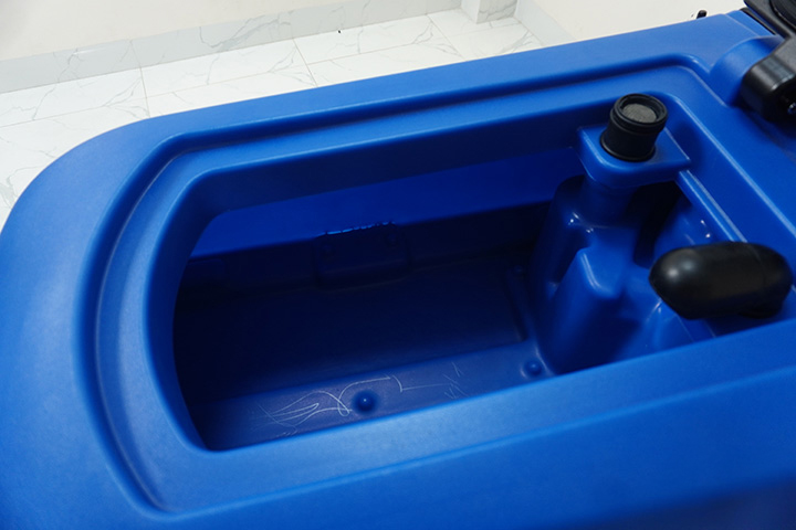 Bình chứa nước sạch được lắp đặt ở phía trước thân máy, có dung tích đủ để chứa một lượng nước sạch lớn. Trong bình chứa nước sạch cũng được thiết kế miếng lọc để ngăn rác và cặn. Máy được trang bị đầy đủ các loại bàn chải như: bàn chải cứng, mâm gai để gắn miếng pad đánh bóng có kích thước rộng, giúp tăng hiệu suất chà sàn nhanh chóng.
