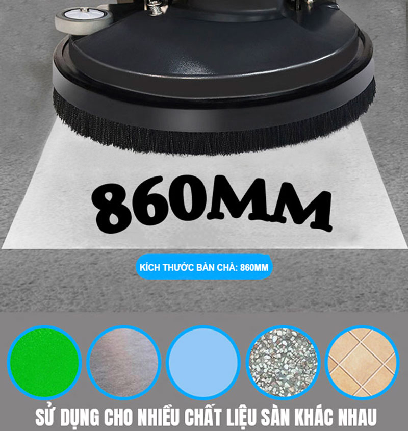 - Quy trình chà sàn: Khi khởi động, máy tự động xả dung dịch tẩy rửa và bàn chà xoay tròn để làm sạch bụi bẩn cứng đầu.