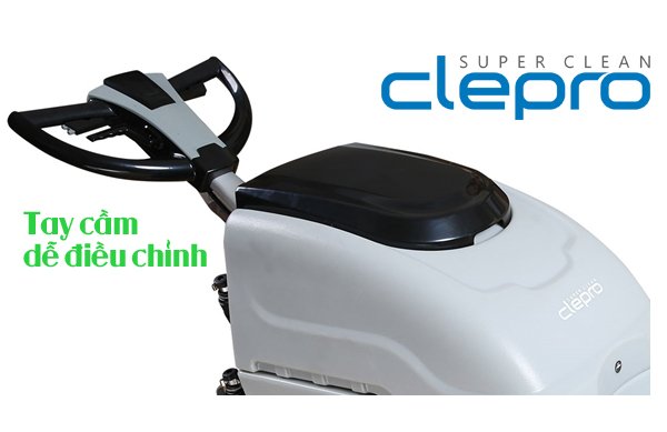- Máy chà sàn liên hợp đẩy tay Clepro C45E có thiết kế chuẩn, với hệ thống điều chỉnh trên tay cầm, cho phép điều chỉnh hướng đi, tốc độ vòng quay và lượng nước tẩy rửa dễ dàng.