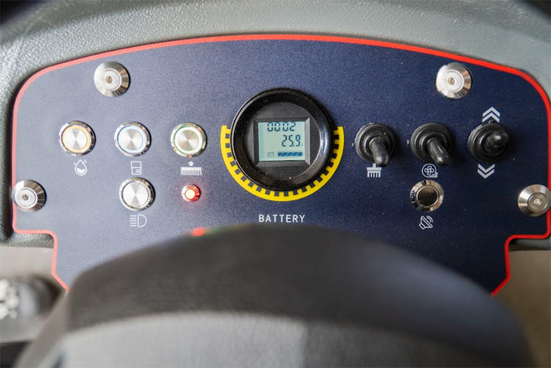 Máy được trang bị khoang lái rộng rãi với màn hình điều khiển, chân ga và phanh tiện lợi. Người dùng chỉ cần ngồi và điều hướng máy di chuyển tự động, giảm tối đa sức lao động. -