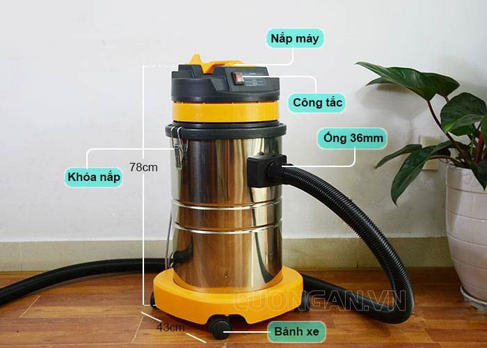 - Chức năng: Hút khô/ướt và hút các bụi bẩn công nghiệp