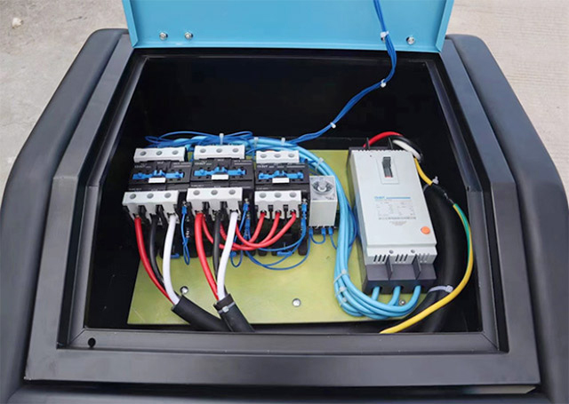 - Tính linh hoạt trong di chuyển và vận hành: Được trang bị 4 bánh xe (có khóa chốt) và khung máy cách điện, chịu lực, máy dễ dàng di chuyển và vận hành an toàn trong các không gian lớn.